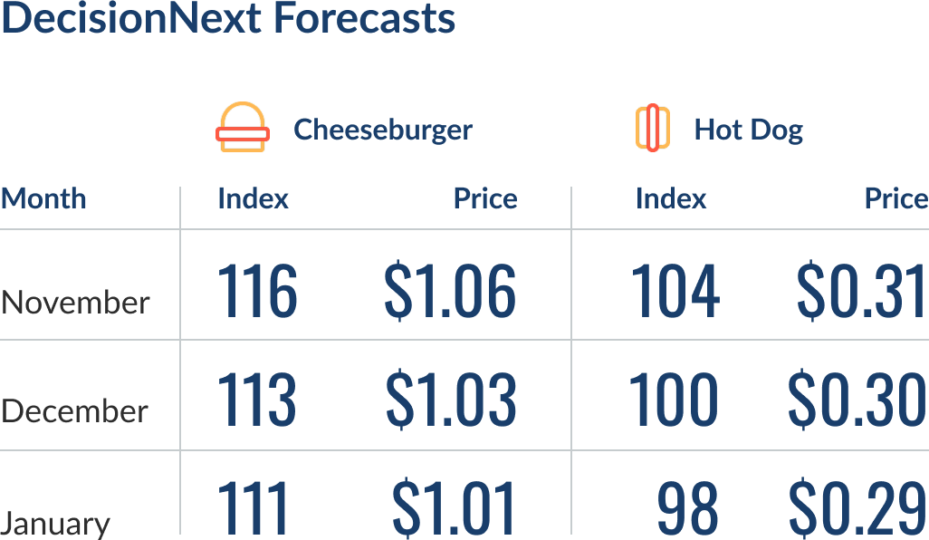With both the Cheeseburger and Hot Dog Indexes now live and updated monthly, DecisionNext users can compare cross-category dynamics in real time, helping procurement, pricing, and planning teams anticipate where volatility may strike next.