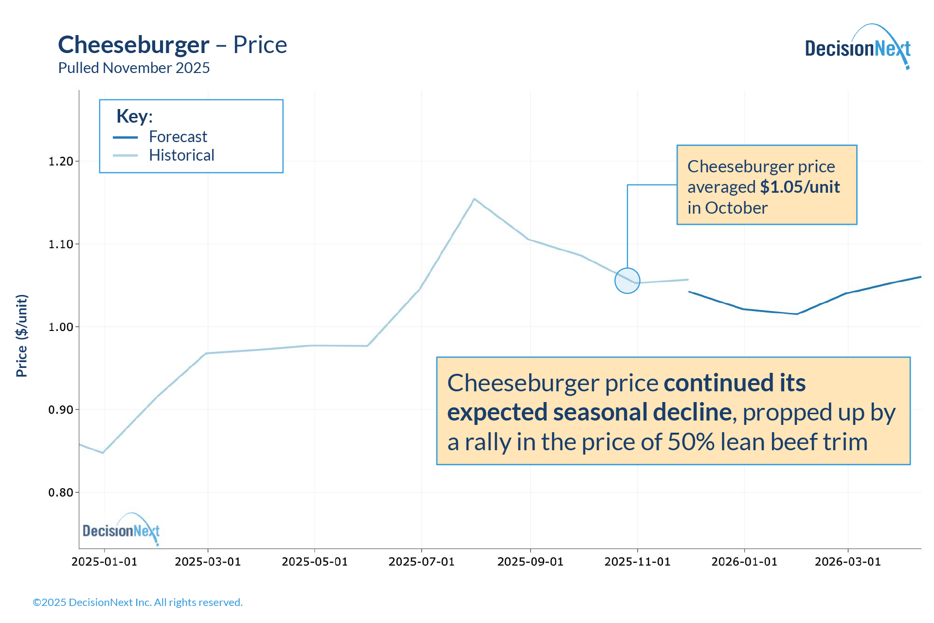 - Cheese Prices: below 2024 and five-year averages, offsetting some protein cost pressures.