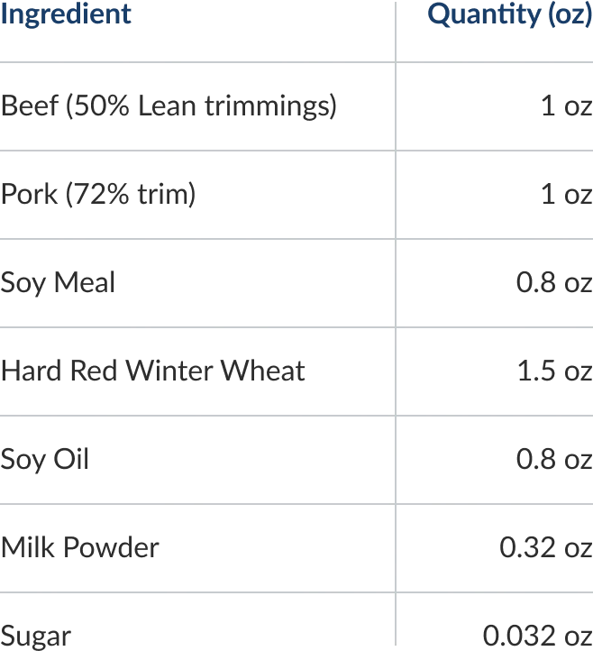 - 50% lean beef trimmings and 72% pork trim as primary proteins